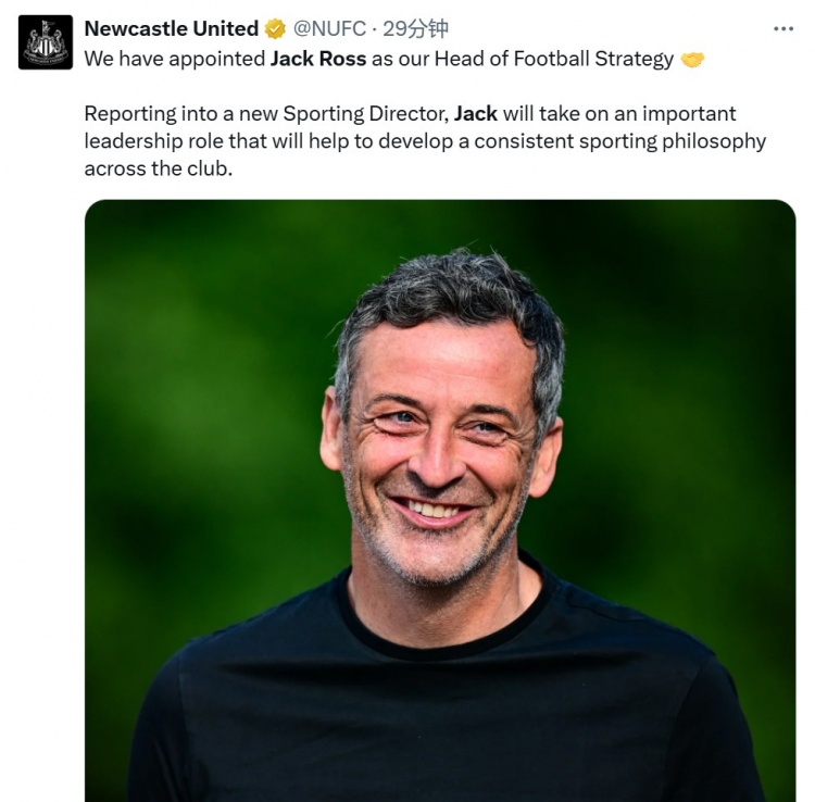 7月14日讯 官方消息,纽卡已任命杰克-罗斯为俱乐部足球战略主管。